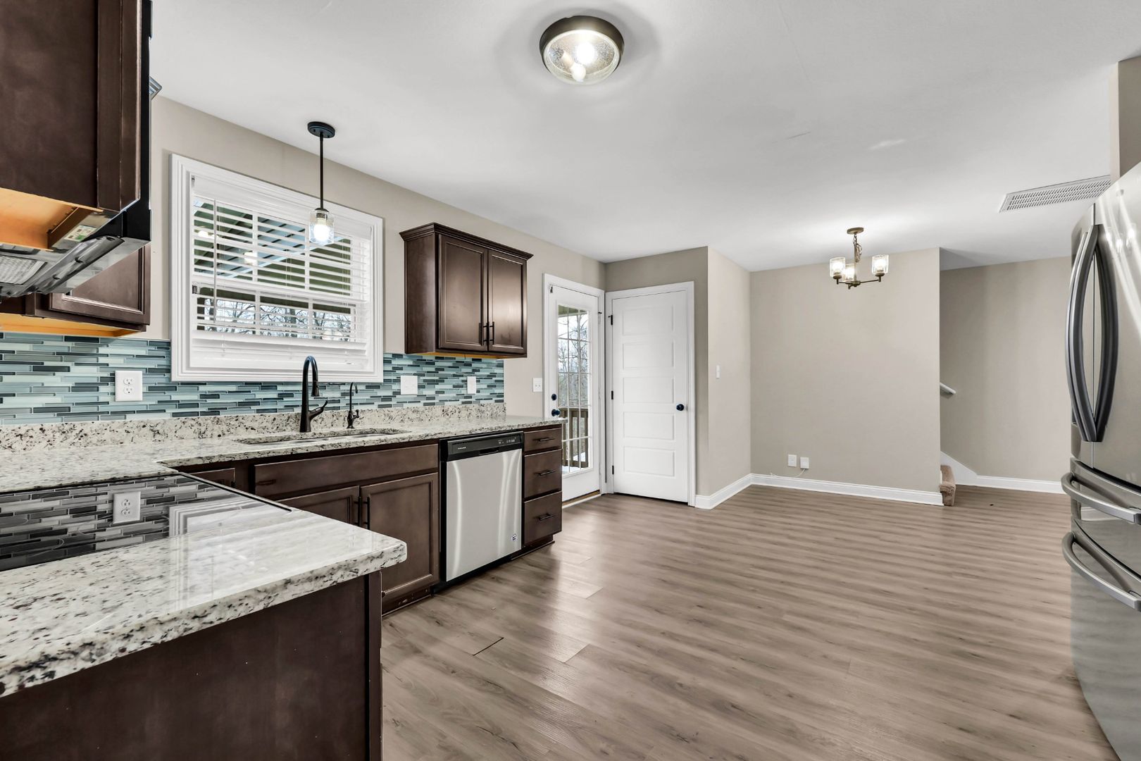 This 3 bedroom, 2.5 bath home offers a functional open-concept layout and a great opportunity for personalization of space. The main level features a spacious living area that flows into a beautiful kitchen with granite countertops, stainless steel appliances, and tile in all wet areas. The layout is ideal for both everyday living and entertaining. Upstairs you’ll find a large primary bedroom along with two additional bedrooms that provide plenty of flexibility for family, guests, or a home office. Step outside to enjoy the covered back deck overlooking the private backyard with no rear neighbors, perfect for relaxing or hosting friends and family. Conveniently located in Clarksville, this home is walking distance to Liberty Park, just 15 minutes to Ft. Campbell, 10 minutes to Downtown Clarksville, the Cumberland Riverwalk, and Austin Peay State University, and 45–50 minutes to Downtown Nashville.